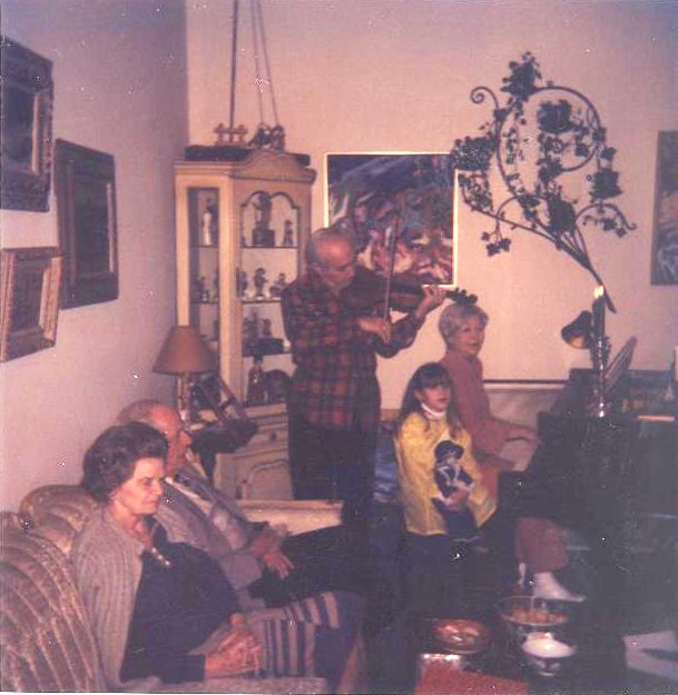 Julian playing for friends in Silver Spring, MD. The author is seated on the piano bench.