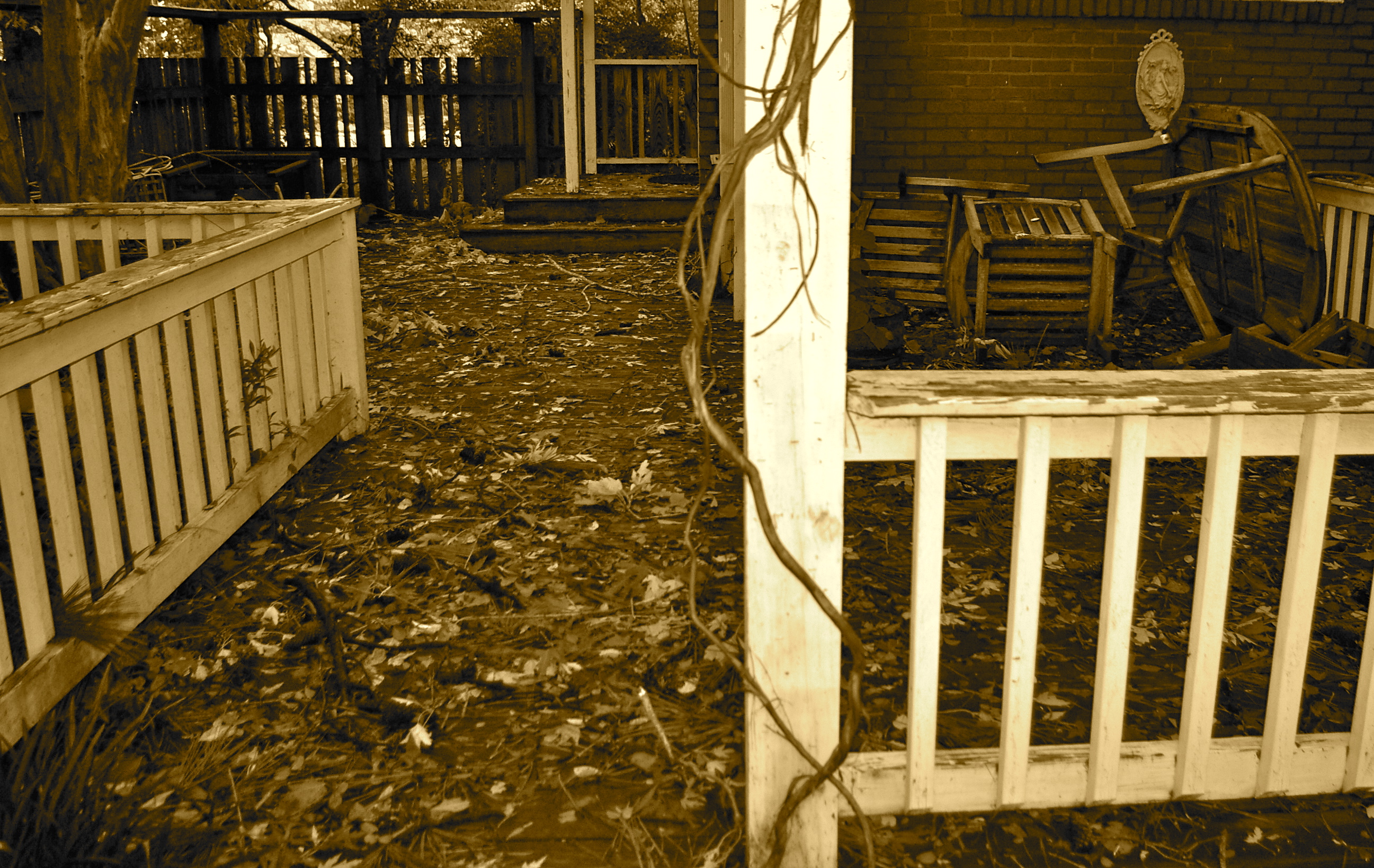 Since Randi didn’t have any photos of the abandoned house, I just used an image of my own house after Hurricane Irene. LOL.