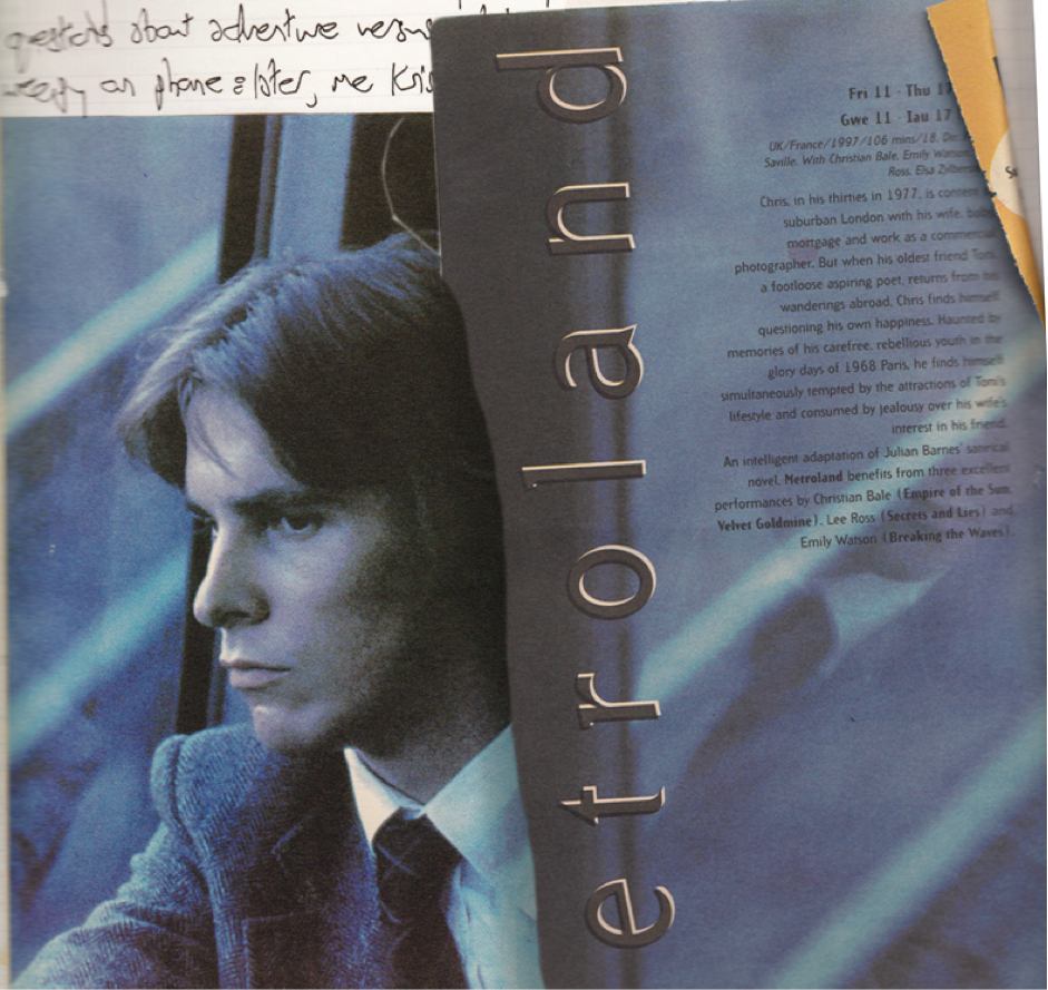 A strange thing happened, though: the day after I saw Clooney as Batman at the Cardiff Odeon, I went to another film called Metroland, at Chapter, the city’s art cinema – on the outskirts of town, across a river bridge, hidden at the end of a park.