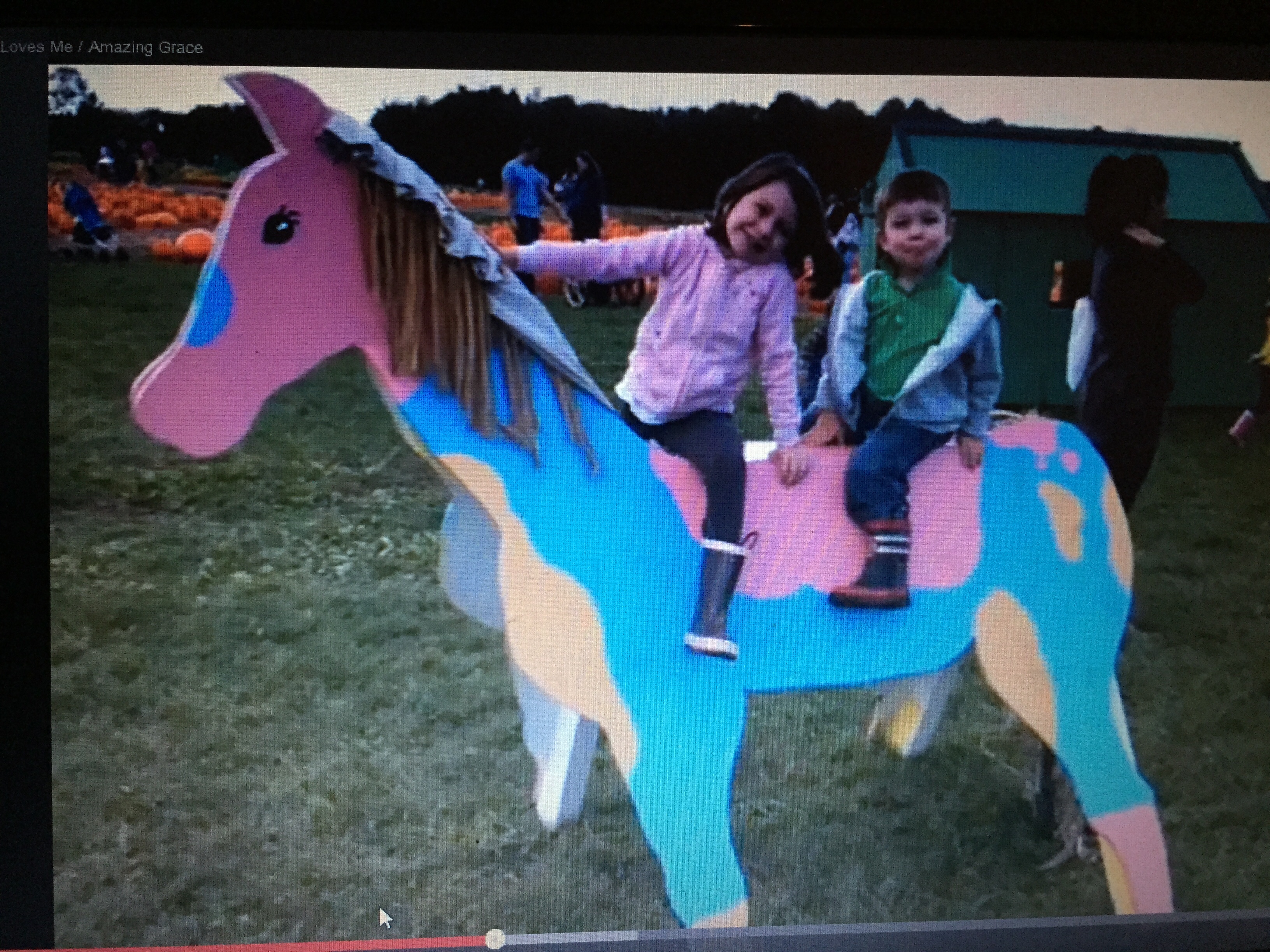 These are just images. Two children on a horse at a pumpkin farm. I’m sure thousands of Connecticut families have this same photograph, the ground covered in so many pumpkins. Both Tristan and Olivia clutch the braided rope. Did she, too, hunt too long for just the right pumpkin?